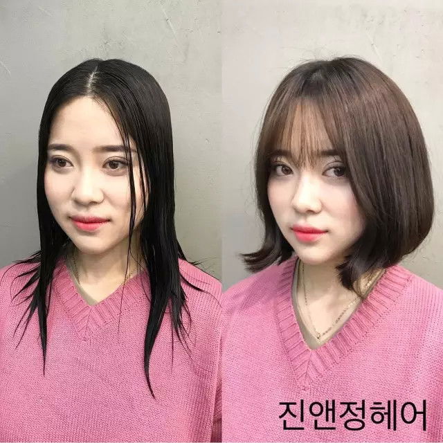 哇~这个是有了前面的刘海 显得脸变小了 改造后发质看起来更加好更有光泽!真的 发质也会影响一个人的颜值美观呀!所以说 你还不好好照顾头发吗?!